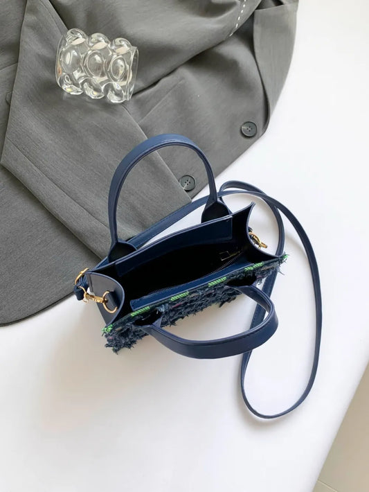 Checkered Raw Edge Adjustable Strap Convertible Bag