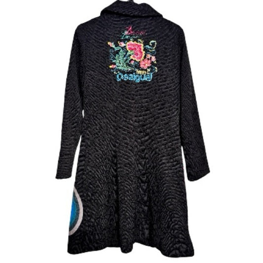 Desigual Black Trench Coat with Colorful Patterns